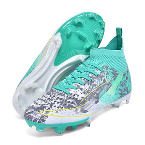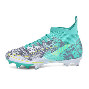 AG Artificial Grass Soccer Cleats, High-Top Knit Football Shoes, Anti-Slip Athletic Boots for Synthetic Turf-Hxh2613