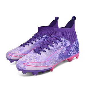 Vibrant Color OptionsAvailable in four bold colorways: Teal/White/Grey, Purple/Pink, Black/Gold, and Silver/Grey, these cleats offer a modern, high-performance look that stands out on the pitch.