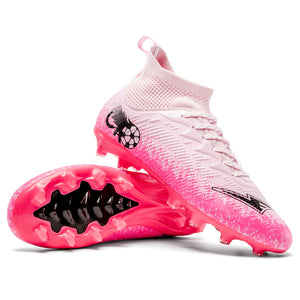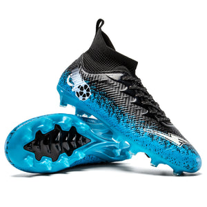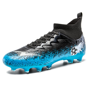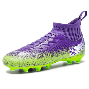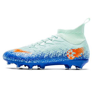 Artificial Grass Soccer Cleats, High-Top Knit Football Shoes, Gradient Print Anti-Slip Athletic Boots for Synthetic Turf-Hxh-X2510-2
