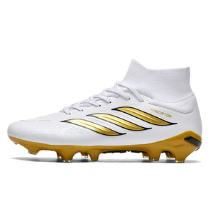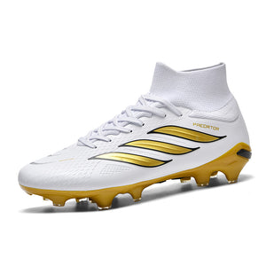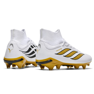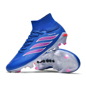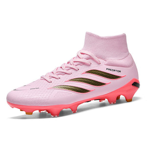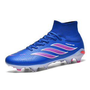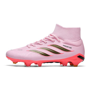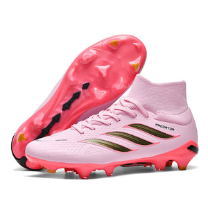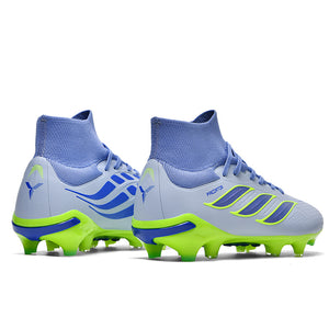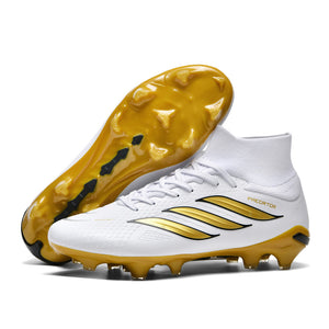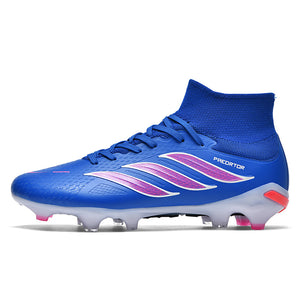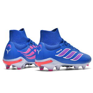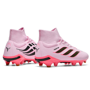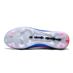 Vibrant Color OptionsAvailable in five bold colorways: Black/White/Red, Light Blue/Purple/Green, Pink/Gold, White/Gold, and Blue/Pink, these cleats offer a professional, high-performance look that stands out on the pitch.