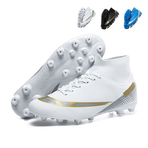 Stand out on the artificial grass pitch with bold, modern color options: Black/Gold, White/Gold/Silver, and Blue/Silver. Each pair features a sleek high-top silhouette, metallic gradient accents, and a durable synthetic finish, blending elite performance with head-turning street style.