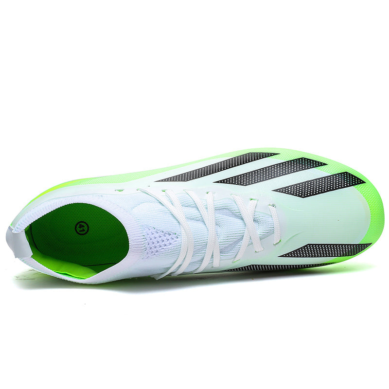 Vibrant Modern AestheticFeaturing a streamlined silhouette and bold gradient colorways, these cleats offer a professional, high-performance look. Available in three striking options: Teal/White, Neon Green/White, and Blue/White.