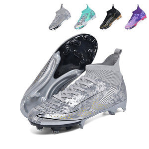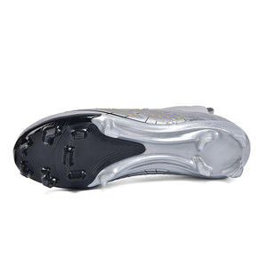 Vibrant Color OptionsAvailable in four bold colorways: Teal/White/Grey, Purple/Pink, Black/Gold, and Silver/Grey, these cleats offer a modern, high-performance look that stands out on the pitch.
