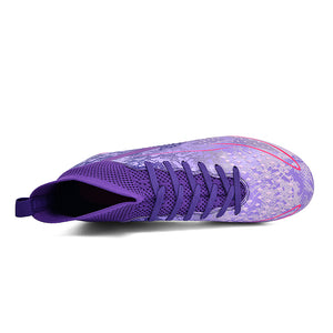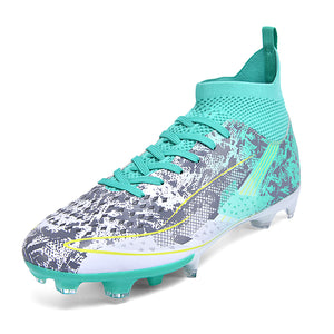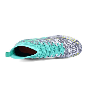 AG Artificial Grass Soccer Cleats, High-Top Knit Football Shoes, Anti-Slip Athletic Boots for Synthetic Turf-Hxh2613