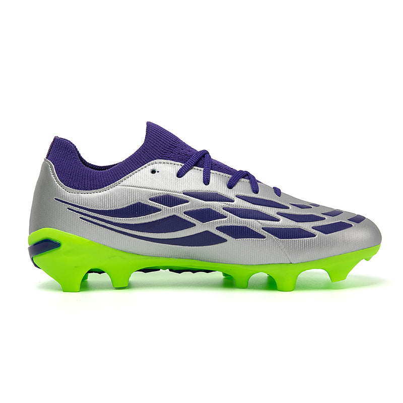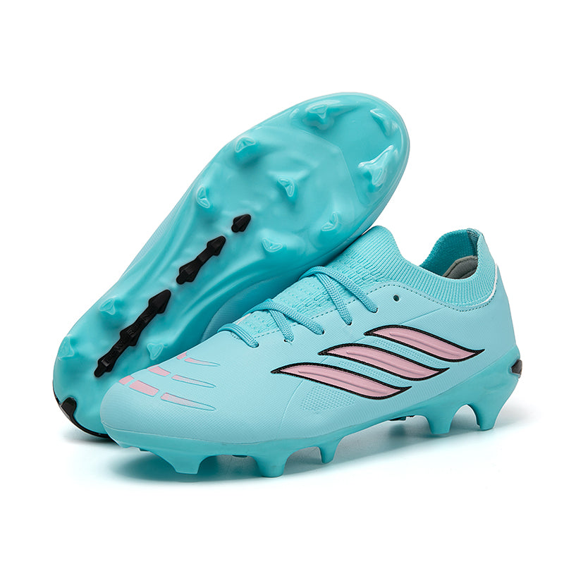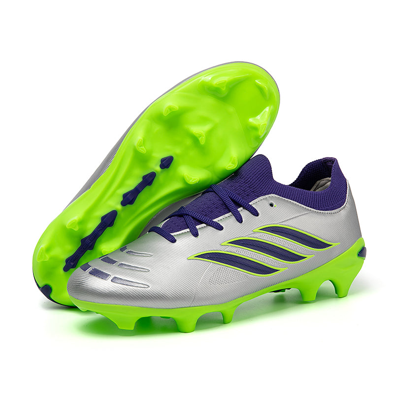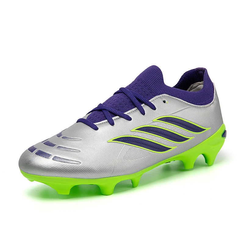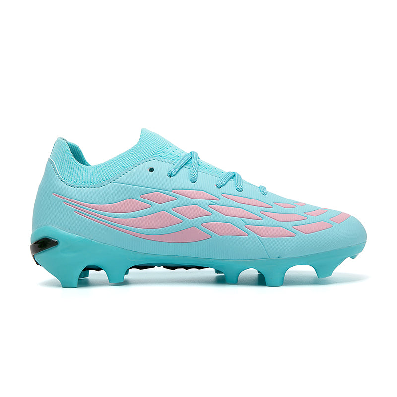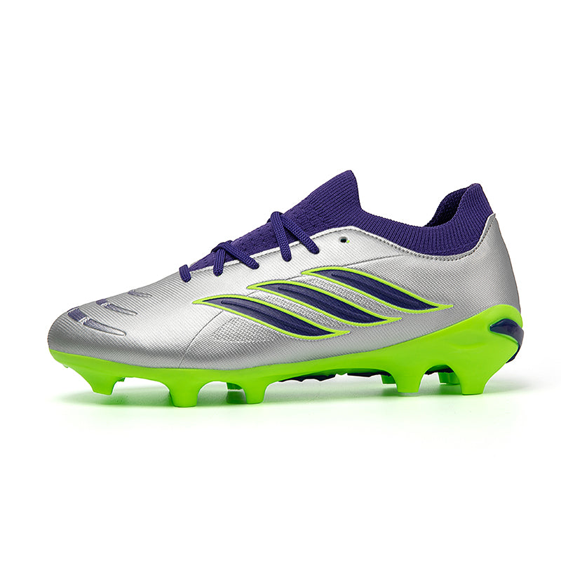 Vibrant Color OptionsAvailable in six bold colorways: Pink/Black/Red, Light Blue/Green, Turquoise/Pink, Black/White/Green, White/Black/Green, and Silver/Purple/Green, these cleats offer a modern, high-performance look that stands out on the pitch.