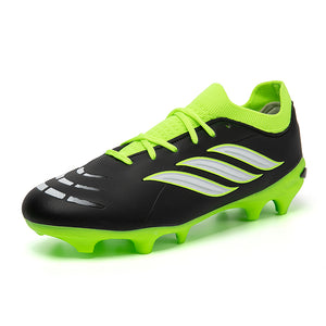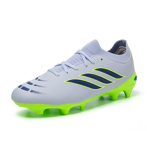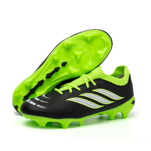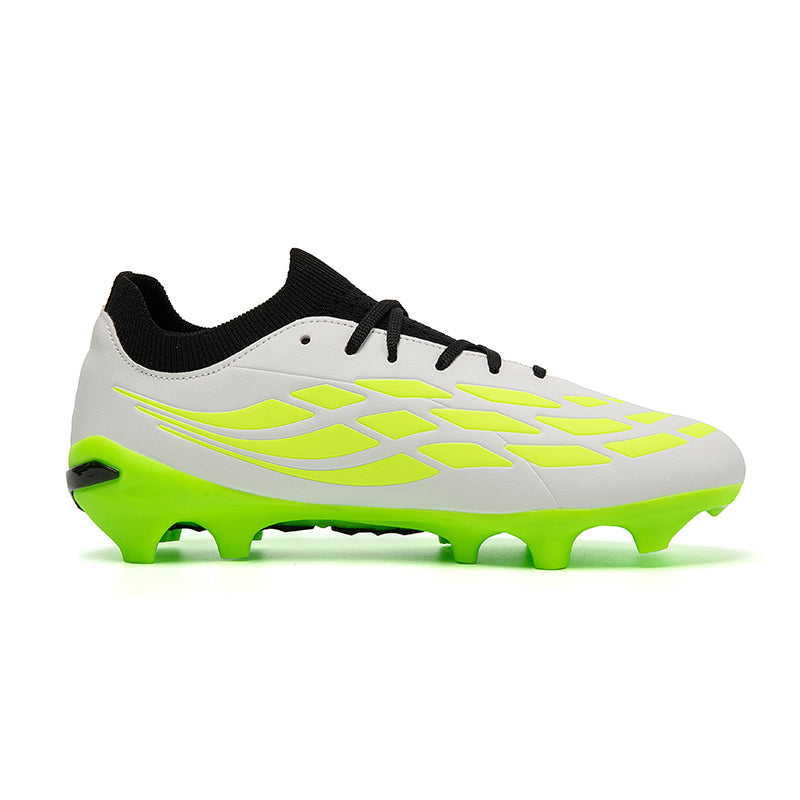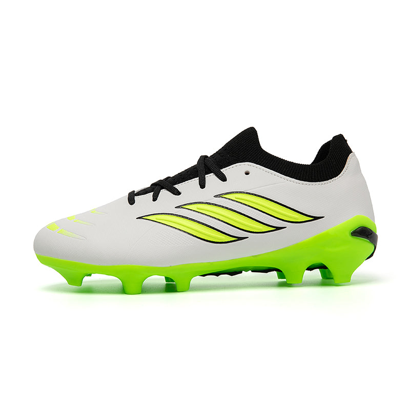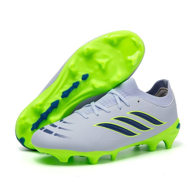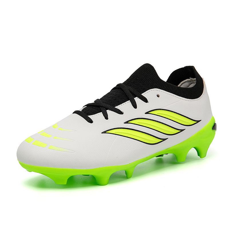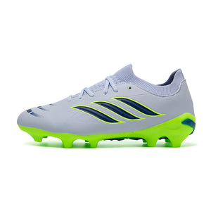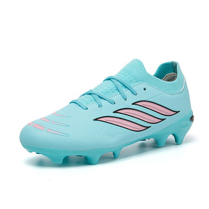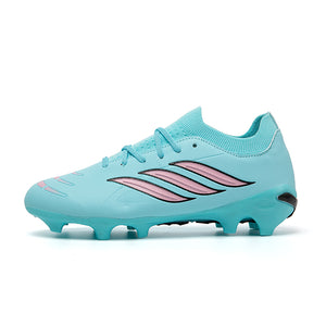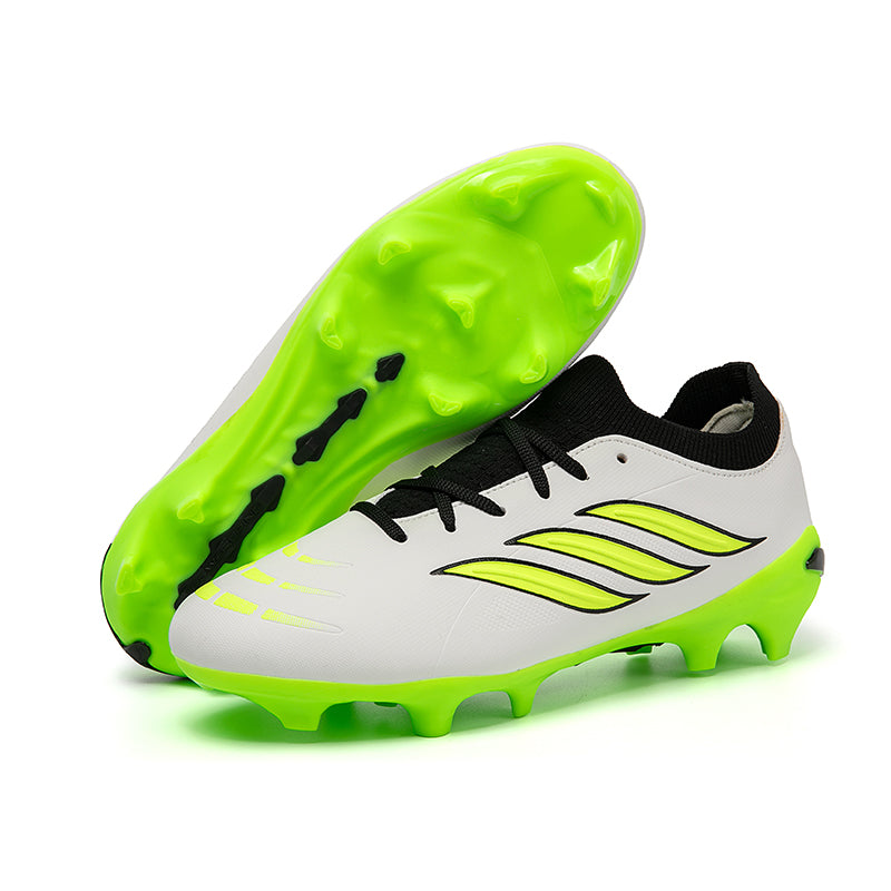 Vibrant Color OptionsAvailable in six bold colorways: Pink/Black/Red, Light Blue/Green, Turquoise/Pink, Black/White/Green, White/Black/Green, and Silver/Purple/Green, these cleats offer a modern, high-performance look that stands out on the pitch.