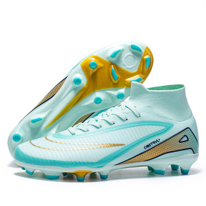 Artificial Grass Soccer Cleats, High-Top Knit Football Shoes, Anti-Slip Athletic Boots for Synthetic Turf-Hxh792G
