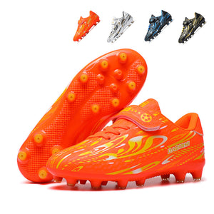 Artificial Grass Soccer Cleats with Hook-and-Loop Strap, Flame Print Breathable Football Boots, Youth Artificial Ground Training Sneakers-Yinzu189