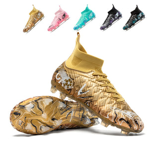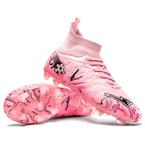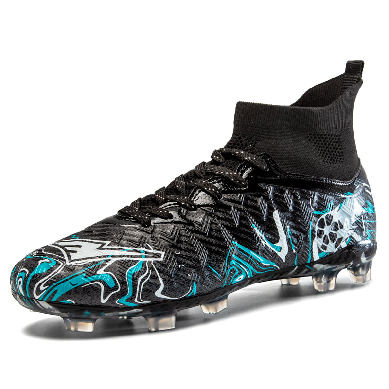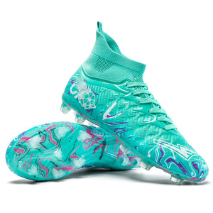 High-Top AG Soccer Cleats - Professional AG Football Boots, Stylish Graffiti Print Soccer Shoes, Transparent Clear Sole Athletic Sneakers for Youth & Adults (Multiple Colors)-Yinzu-X2601