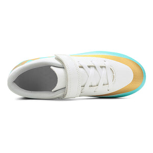 Featuring a convenient elastic lace + hook-and-loop strap system, these shoes are designed for kids' independence. The secure strap eliminates heel slippage, ensuring a stable fit during intense games while making it simple for children to put on and take off without adult assistance.